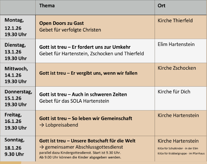 Allianzgebetsabende in Thierfeld, Zschocken und Hartenstein
